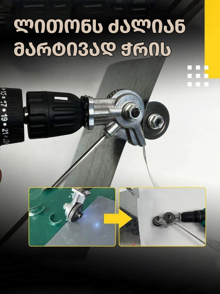 სწრაფად გადააქციეთ თქვენი ბურღი ეფექტურ ელექტრონულ საჭრელად ამ ინოვაციური ლითონის ხელსაწყოს სამაგრით, რომელიც იდეალურად ერგება თქვენს ბურღის ჩამკეტს. სამაგრი ადვილად და უსაფრთხოდ ჯდება ადგილზე და მზად არის მყისიერი გამოყენებისთვის. ფართოდ გამოიყენება სხვადასხვა მასალის დასამუშავებლად და იდეალურია ავტომობილებისა და სახლის სარემონტო სამუშაოებისთვის, როგორებიცაა, ლითონის სახურავის ჭრა, HVAC სავენტილაციო არხებისა და ლითონის სხვა ფირფიტების შეკეთება.
